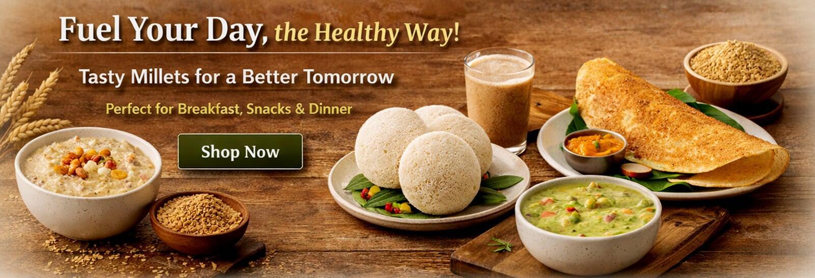 Crafted with wholesome millets and natural ingredients, our product range supports better digestion, steady energy, balanced blood sugar and long-lasting fullness.